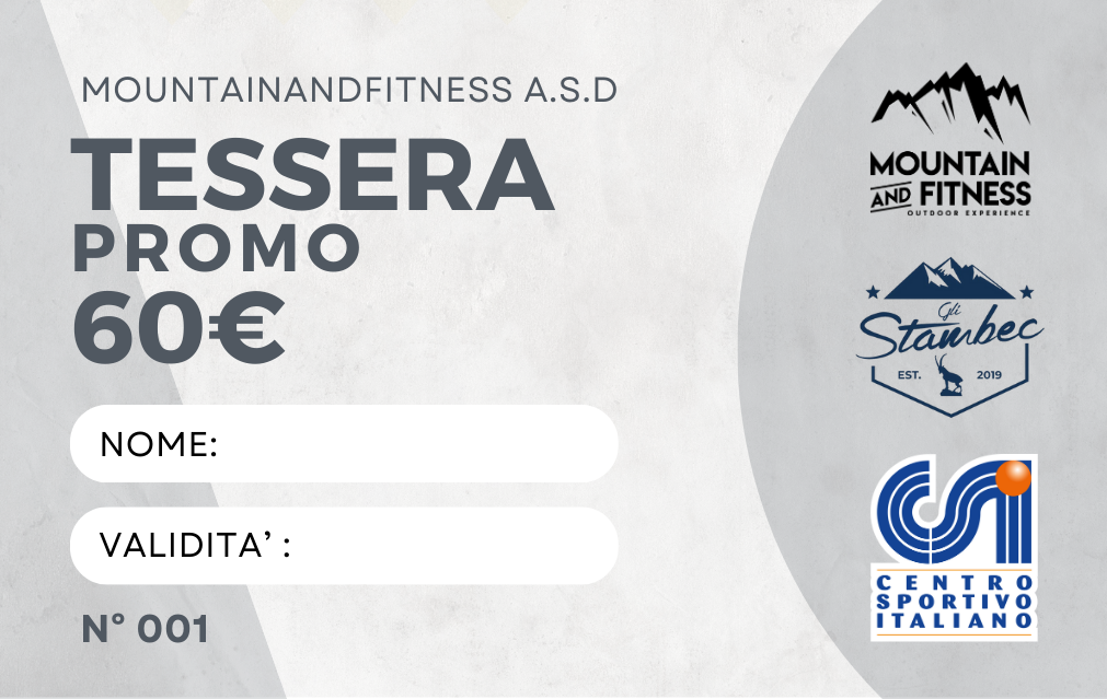 NB: ricordiamo che per partecipare a qualsiasi ATTIVITA’ ASSOCIATIVA  promossa da MountainAndFitness è OBBLIGATORIO il tesseramento CSI ed essere in possesso del certificato medico di sana e robusta costituzione in corso di validità